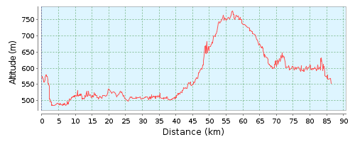von 520 m hinauf auf 930 m. Die Steigung verteilt sich allerdings auf